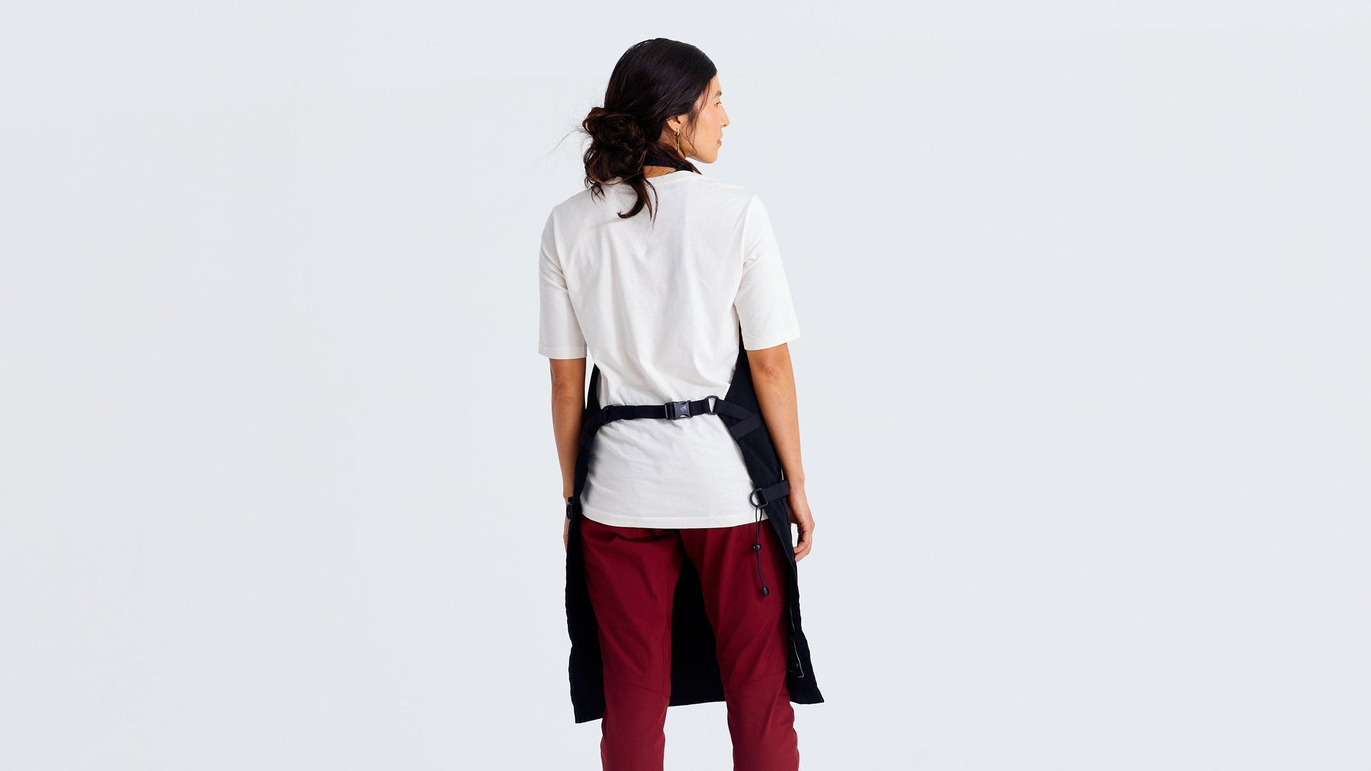 - Apron can be worn three different ways for versatility and comfort